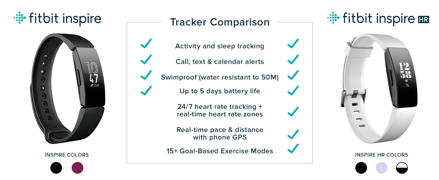 Fitbit Inspire HR – Health & Fitness Tracker with 24/7 Heart Rate, Sleep & Swim Tracking, Waterproof Smart Band